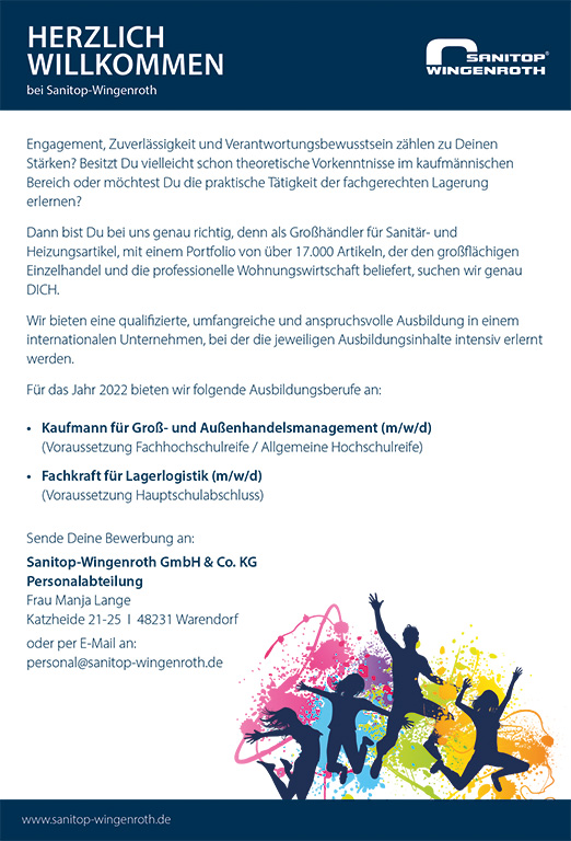 Dann bist Du bei uns genau richtig, denn als Großhändler für Sanitär- und Heizungsartikel, mit einem Portfolio von über 17.000 Artikeln, der den großflächigen Einzelhandel und die professionelle Wohnungswirtschaft beliefert, suchen wir genau DICH.
