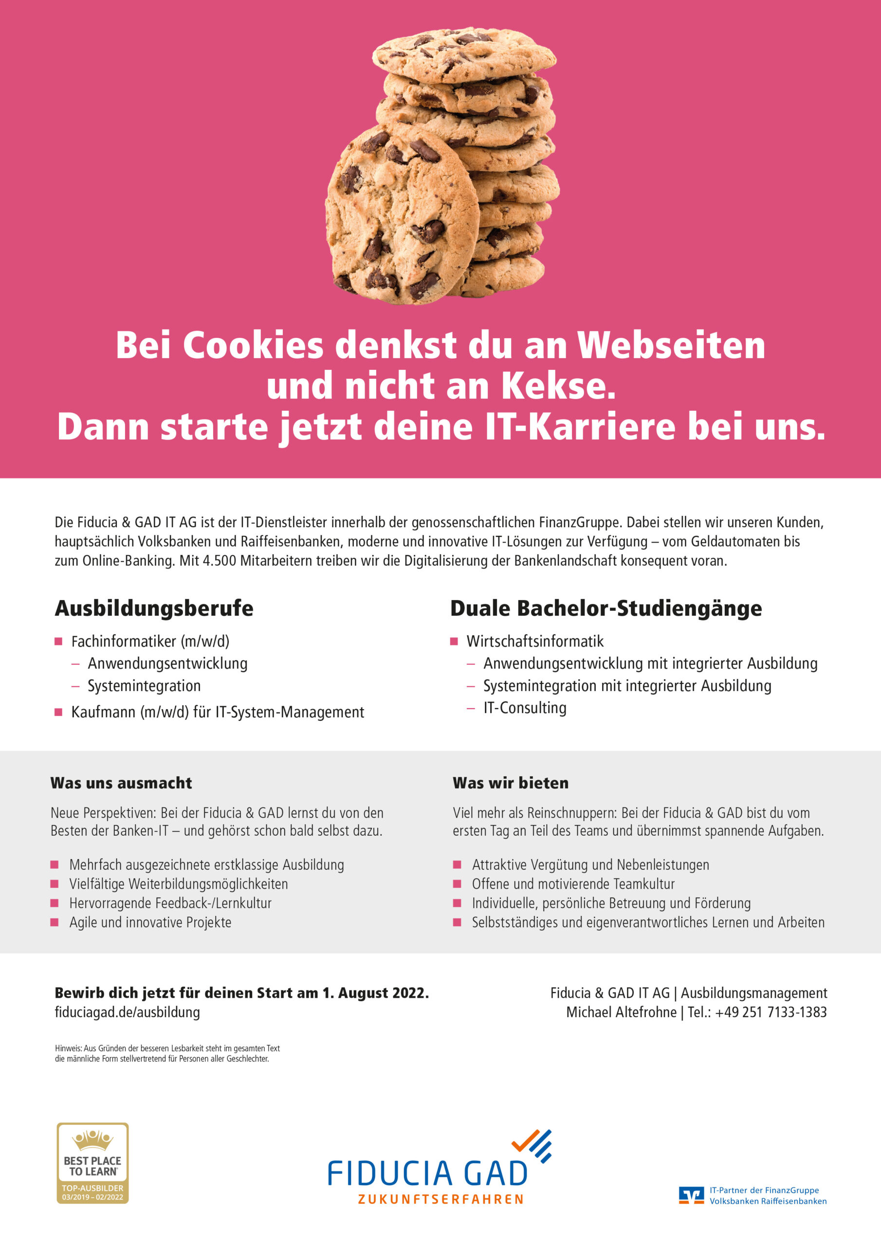 Weitere Infos und unsere Stellenausschreibung findest du auf unserem digitalen Campus: www.fiduciagad.de/ausbildung